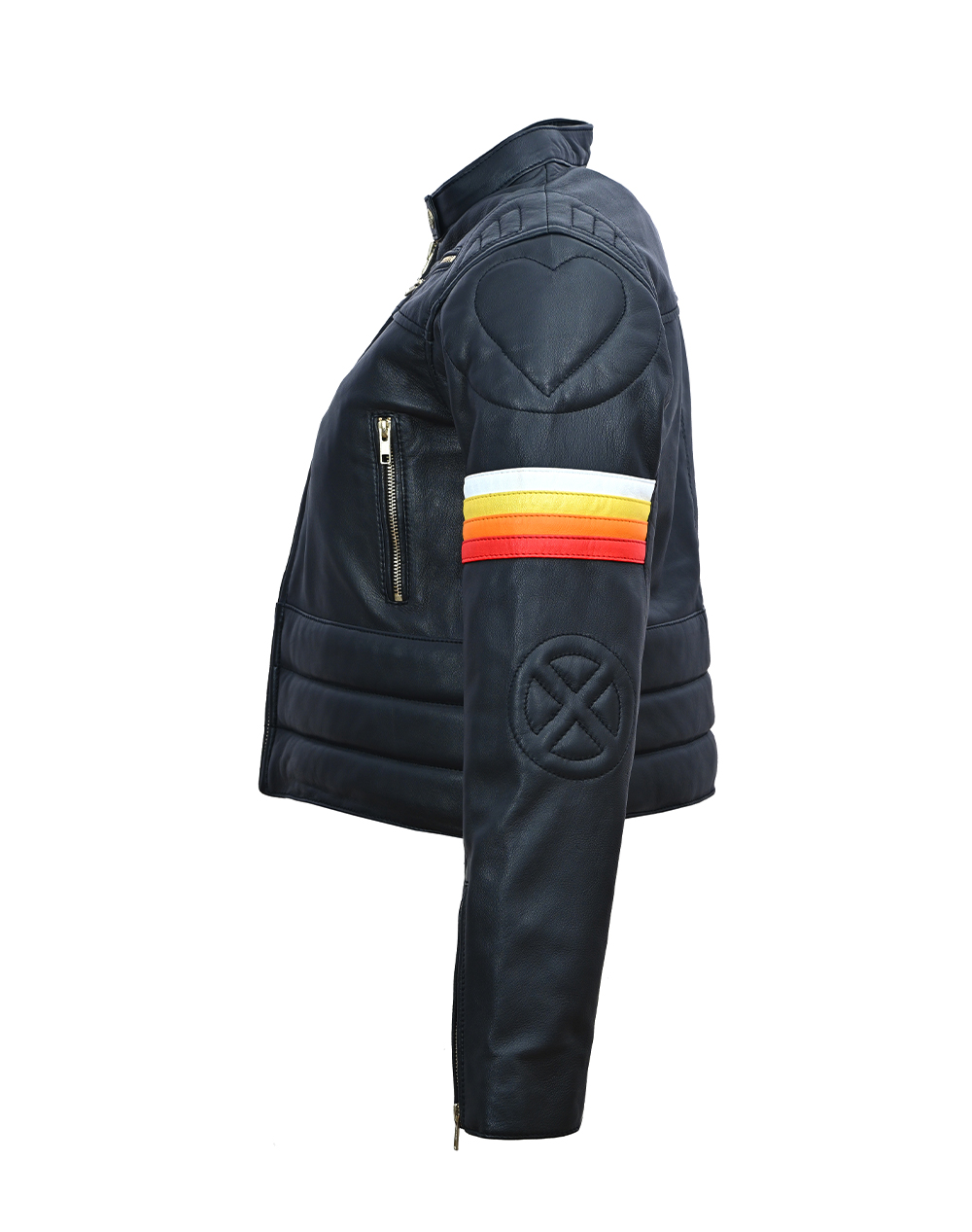 - Détails signature Eudoxie : Un cœur brodé sur l’épaule et un X en mousse sur les coudes, clin d’œil à l’esprit « Ride Like a Girl ».
